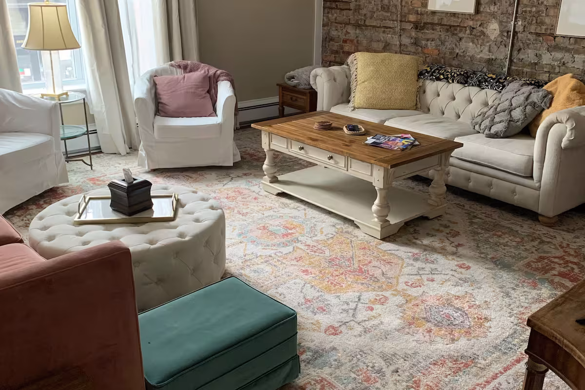 Get ready for a genuinely unique getaway! Spacious apartment in historic downtown Richmond 20 min from downtown Lake Geneva WI. This hidden gem offers the best of both worlds with hiking trails and a lively downtown feel. Experience some of the best restaurants and shopping steps from your door! The best part is your above a trendy hot spot for some of the best coffee around!